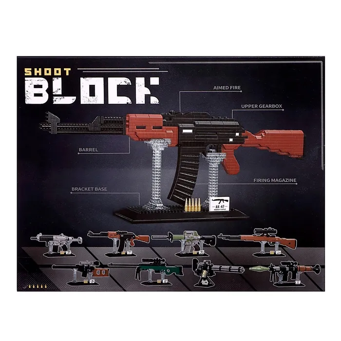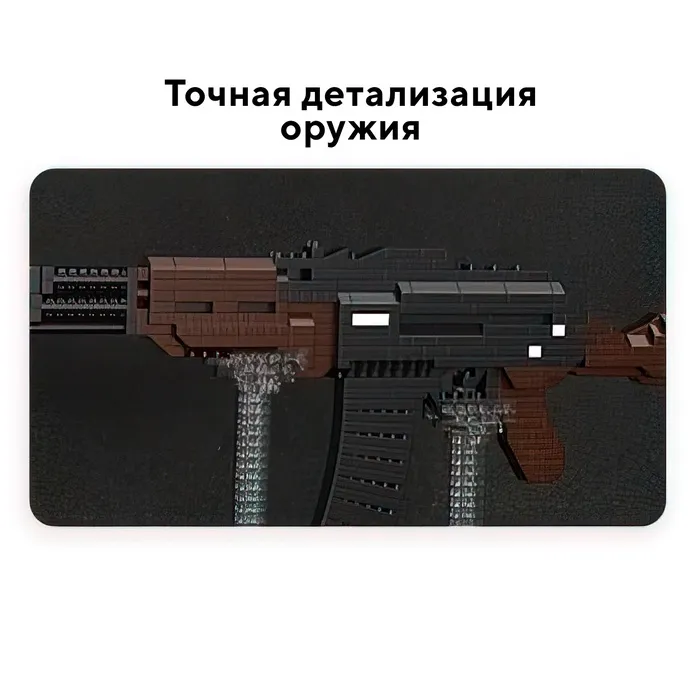 • Точная детализация – 808 элементов: Все ключевые элементы автомата, включая приклад, цевьё и магазин, проработаны в конструкции. Модель сохраняет узнаваемый облик оригинала.