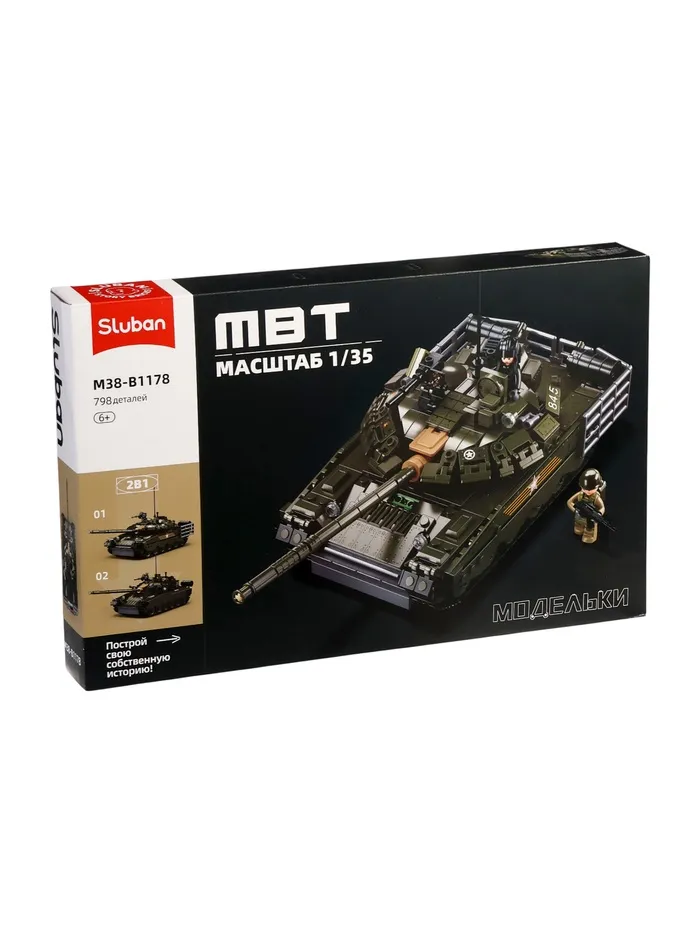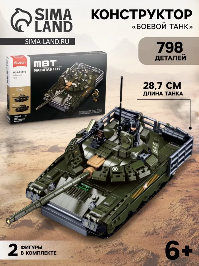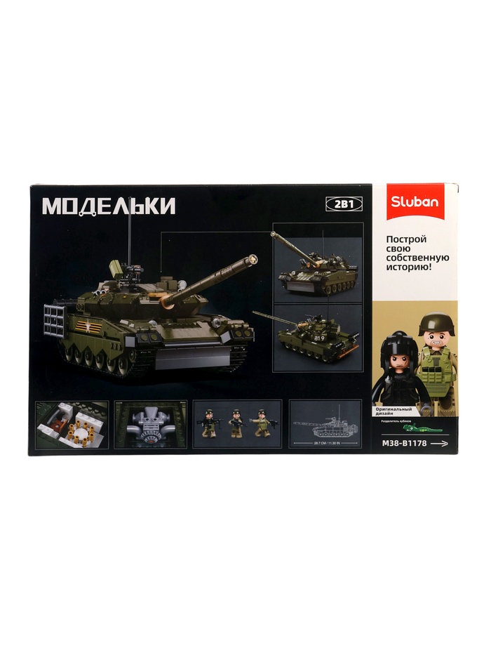 Конструктор «Модельки. Боевой танк», 2 варианта сборки, 798 деталей, с фигурками — Характеристики
