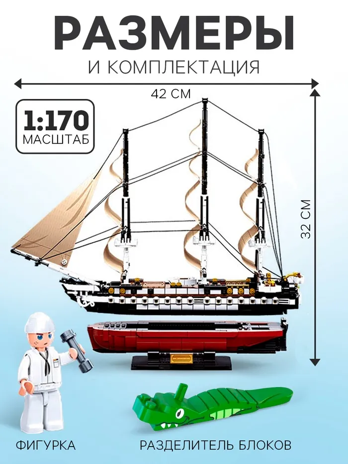 Конструктор Модельки «Фрегат», 1118 деталей — Характеристики
