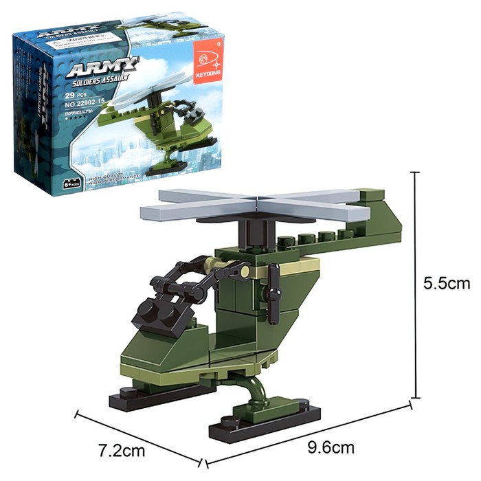 - Реалистичная игровая модель: в комплект входят три фигурки бойцов и аксессуары для сюжетной игры. Готовая машина имеет подвижные элементы, ее длина составляет 29 см. Ребёнок сможет не только построить, но и обыграть различные сценарии.