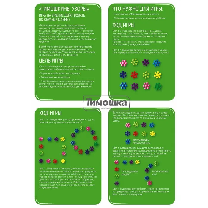 Создавай, комбинируй, изобретай! Конструктор «Молекулы» — это универсальный строительный набор для развития воображения и инженерного мышления. Соединяя детали, ребенок проектирует собственные конструкции, от простых форм до сложных объемных моделей.