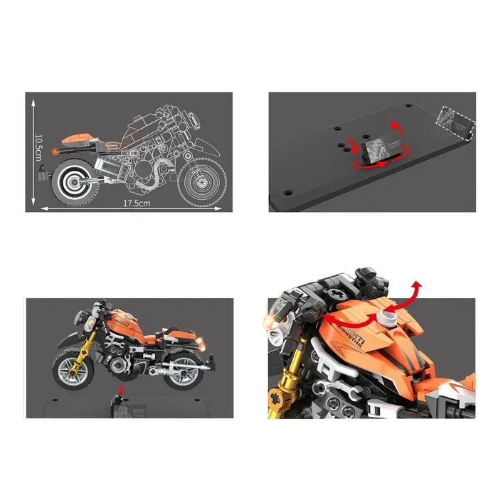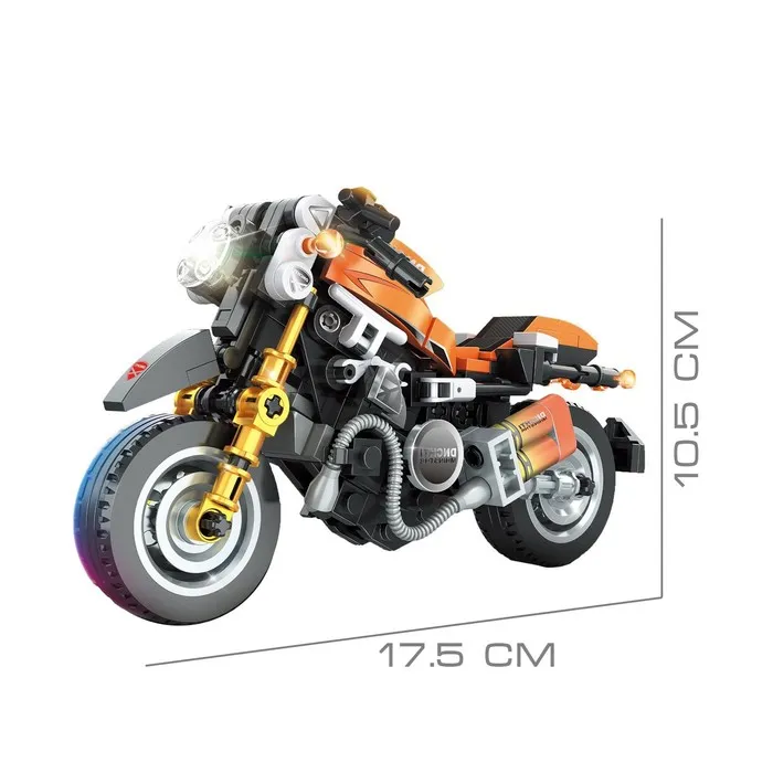 - Набор из 265 деталей: Ребенок сможет собрать детализированную модель мотоцикла с подвижными элементами. Процесс сборки увлечет на несколько часов, а результат станет предметом гордости.