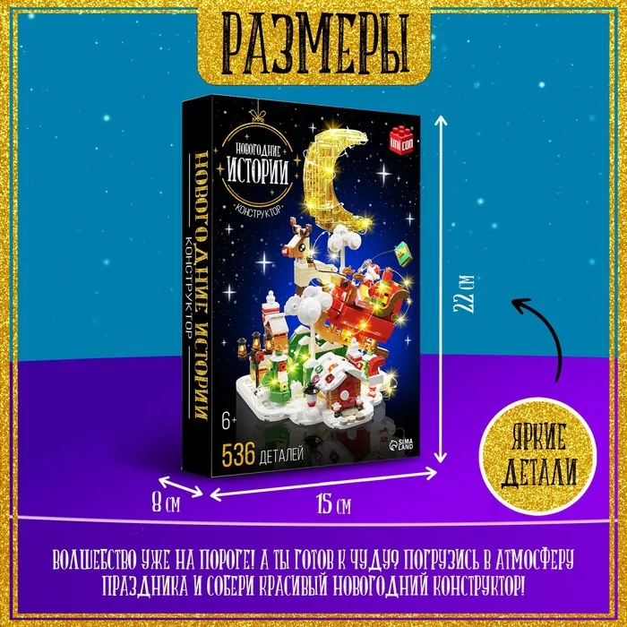 Конструктор «Новогодние истории», 536 деталей, с гирляндой — Характеристики