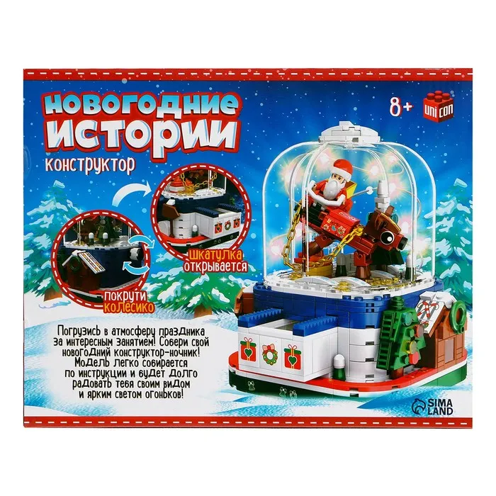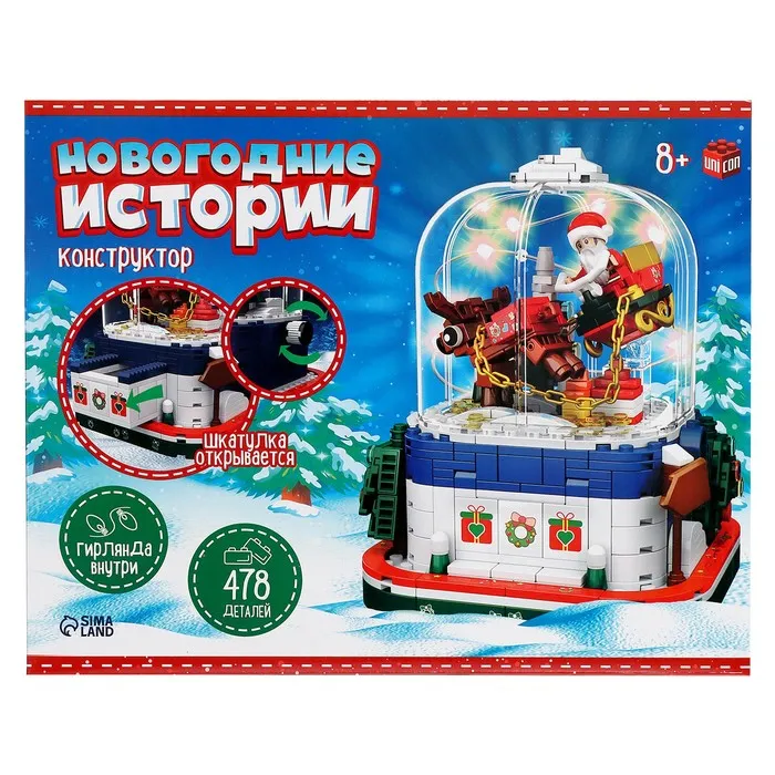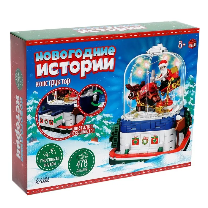 Конструктор «Новогодние истории», шкатулка, гирлянда, на батарейках, 478 деталей — Характеристики