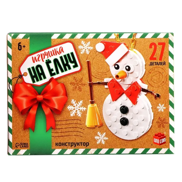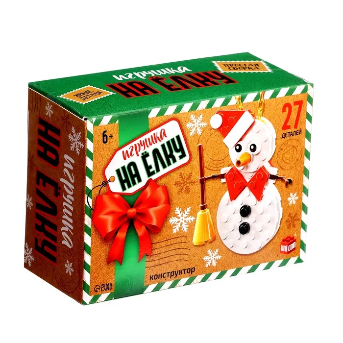 - Включает 27 детали, позволяющих собрать снеговичка для украшения ёлки.