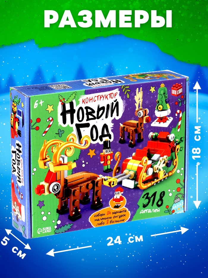 Конструктор «Новый год», 12в1, 318 деталей, 2 варианта сборки — Характеристики