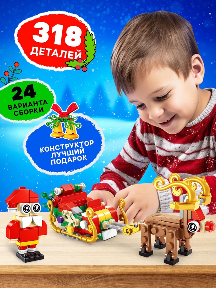 - 12 моделей в одном наборе: в коробке вас ждут детали для сборки 12 разных фигурок: от оленёнка и Деда Мороза до сказочного домика и саней. Комбинируйте их, создавая собственные праздничные сценки и истории.
