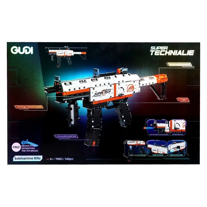 Конструктор Оружие «MP-5 с рукояткой», стреляет мягкими пулями, 540 деталей — Характеристики