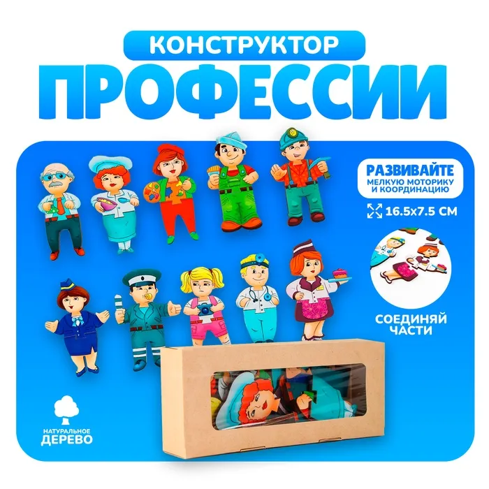 Конструктор «Профессии» — это деревянный набор, который открывает для детей увлекательный мир творчества и фантазии. Благодаря простым правилам и ярким элементам, он идеально подходит для мальчиков и девочек от 3 лет.