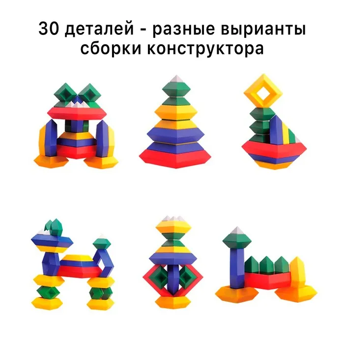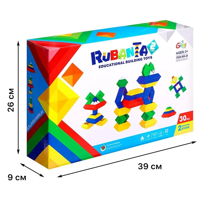 - 30 деталей: Набор включает все необходимые элементы для сборки пирамидки. Каждая деталь легко соединяется, обеспечивая удобство и удовольствие от процесса сборки.