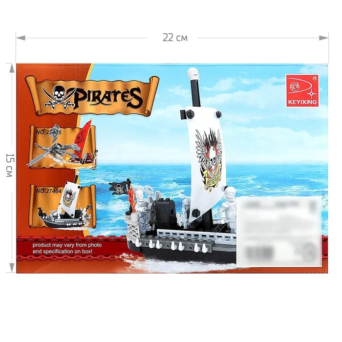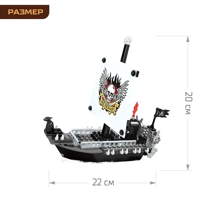 - Набор содержит 125 деталей и позволяет сконструировать пиратское судно со скелетами-корсарами на борту.