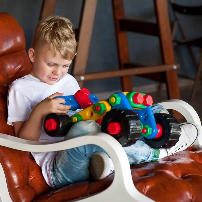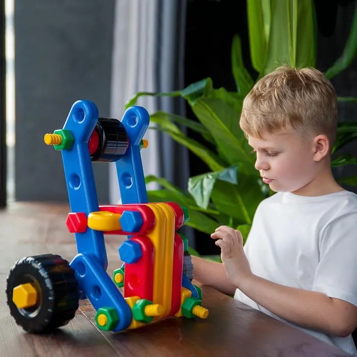 Конструктор помогает формировать пространственное мышление, координацию и усидчивость. Ребёнок учится работать по инструкции и создавать собственные механизмы.