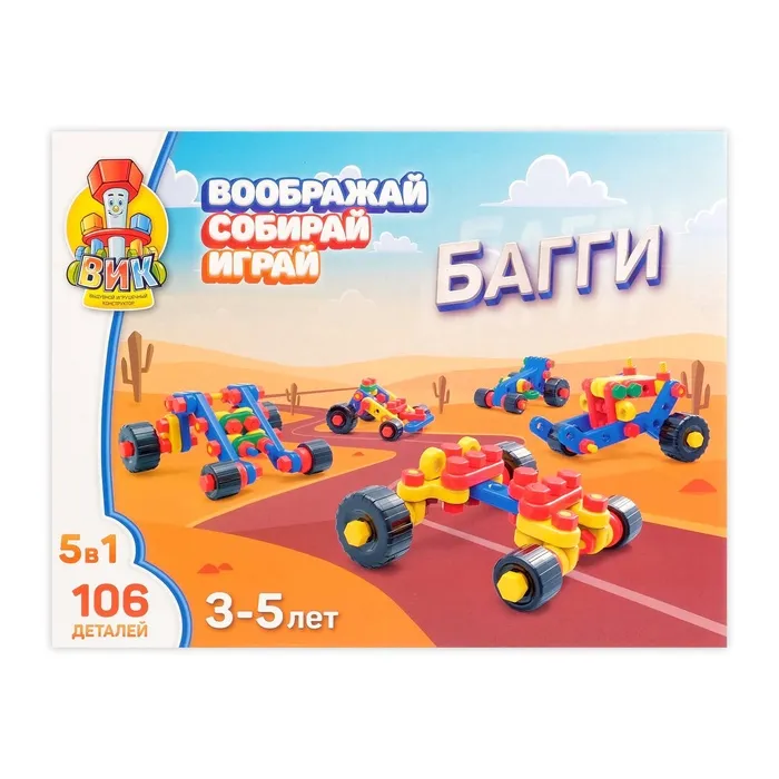 Конструктор «Багги 5 в 1» — увлекательный набор для детей, которые любят собирать, экспериментировать и придумывать новые конструкции. Из 106 деталей можно собрать 5 разных моделей внедорожников, каждая из которых обладает уникальным дизайном. Играя, ребёнок развивает воображение, логику и моторику.