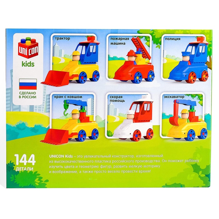 Красочный конструктор ТМ Unicon привлекает внимание и стимулирует познавательную активность даже малышей. Собирая различные фигуры, ребёнок в игровой форме знакомится с основными и дополнительными цветами, учится различать предметы по величине и считать их. Конструирование активно развивает моторику рук, воображение и пространственное мышление.