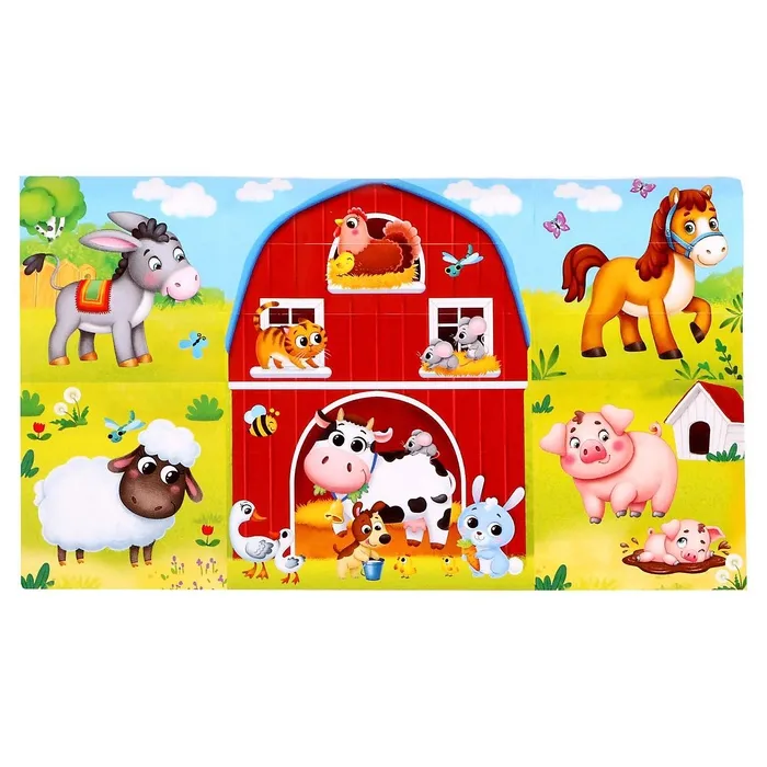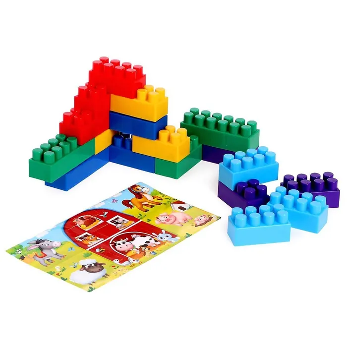 Красочный конструктор «Весёлая ферма» привлекает внимание и стимулирует познавательную активность малышей. Ребёнок в игровой форме познакомится с основными цветами, научится различать предметы по величине и считать их. Будет знать, как выглядят домашние животные и зверята с фермы, и правильно произносить их название.