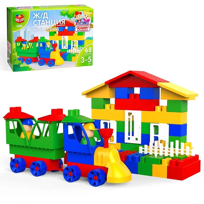 Конструктор пластиковый «Железнодорожная станция», 68 деталей — Характеристики