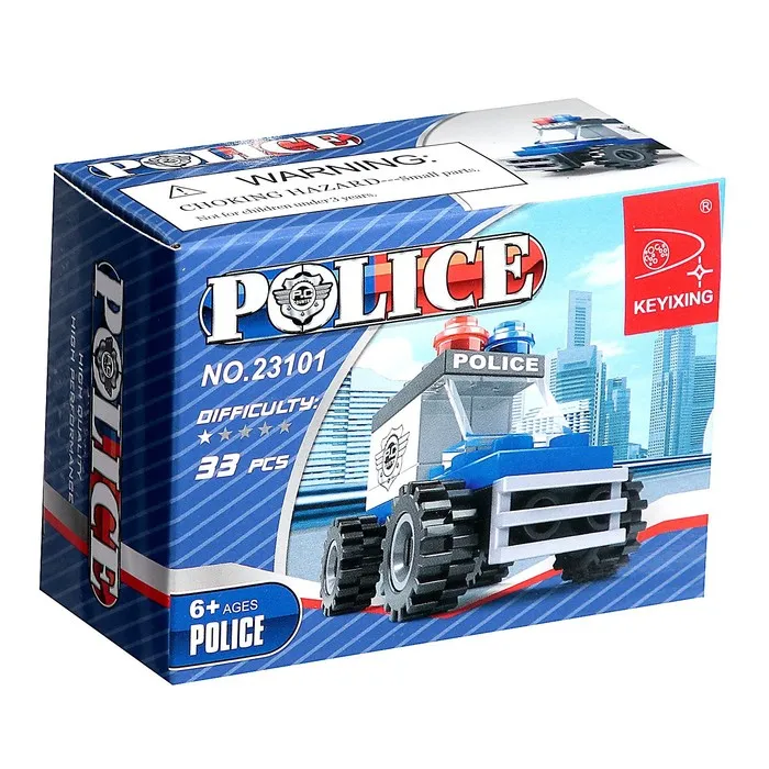 В городе участились преступления? С набором торговой марки Ausini мальчишка вступит в ряды стражей порядка и защитит жителей от злоумышленников. Из 33 деталей набора ребёнок соберёт полицейского и внедорожник. Спецтехника оборудована проблесковыми маячками, защитной решёткой на переднем бампере и крупными колёсами с агрессивным протектором. На такой машине малыш догонит всех нарушителей закона.