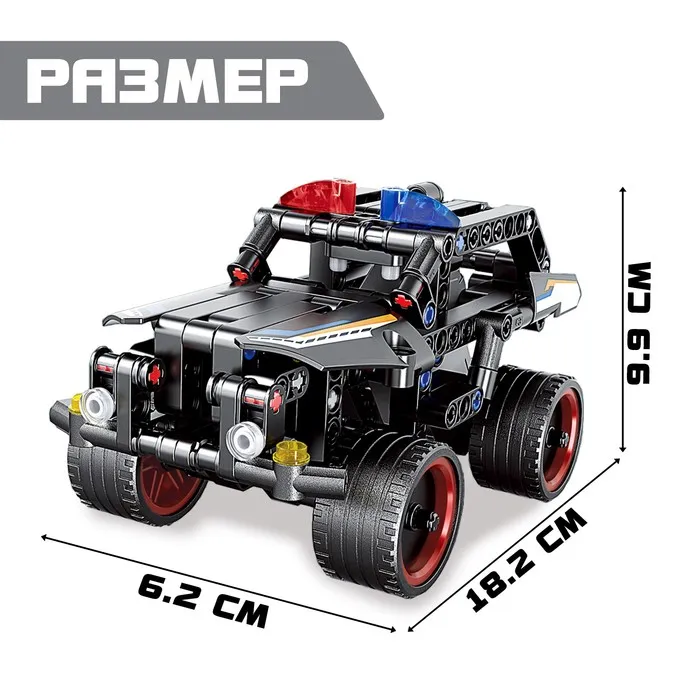 Конструктор «Полицейский джип» — сборная модель гоночного автомобиля, которую ребёнок соберёт своими руками. С ней юный гонщик окажется в мире захватывающих заездов на скорость, где он будет стремиться стать первым на финише и завоевать титул чемпиона!