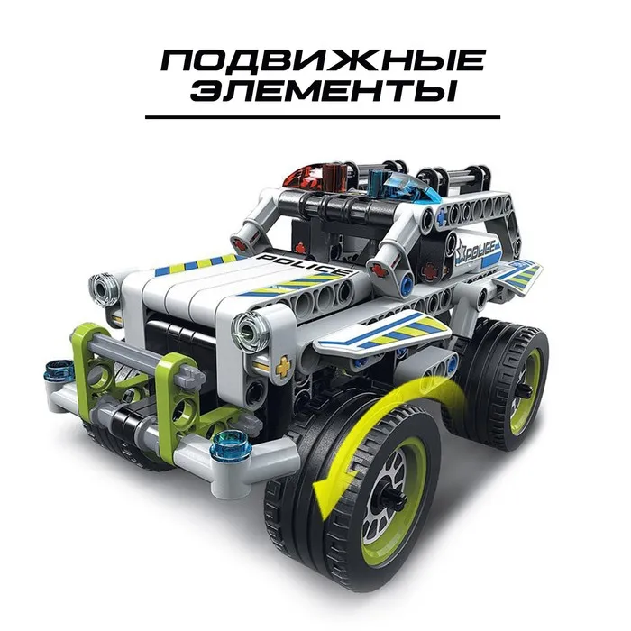 Конструктор полицейский внедорожник UNICON Техно, инерционный, 185 деталей, 6+ — Характеристики