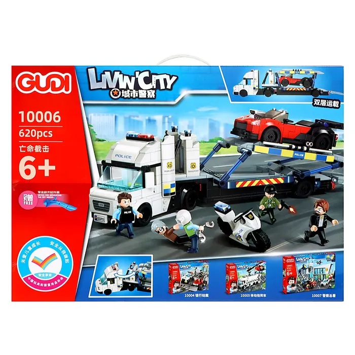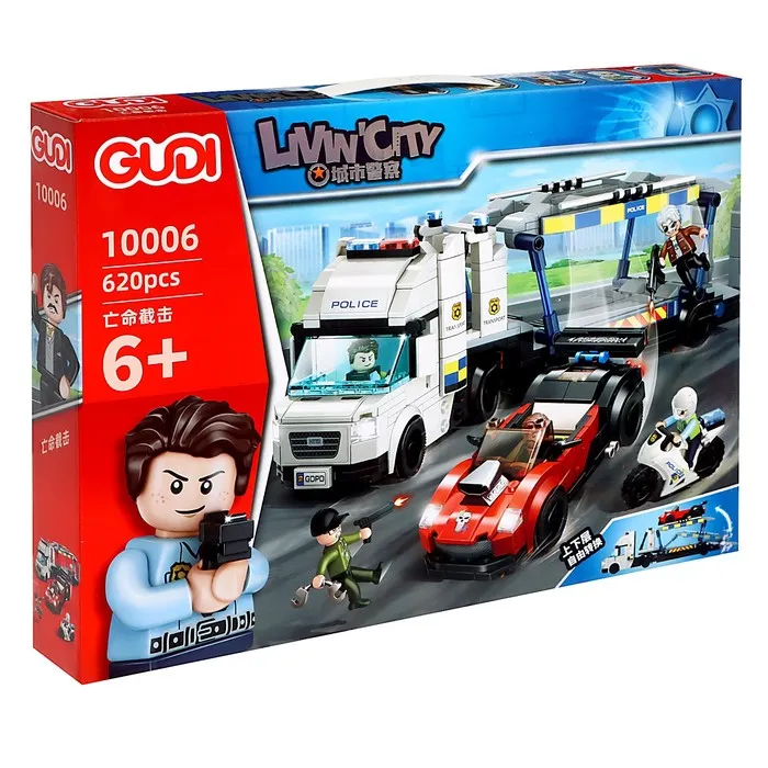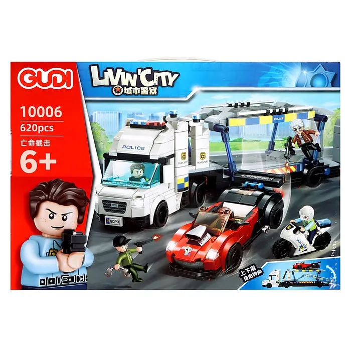- Мини-фигурки и аксессуары: В комплект входят мини-фигурки автоугонщиков и полицейских, что даёт возможность разыгрывать разнообразные сцены погони, сражений и захвата преступников.
