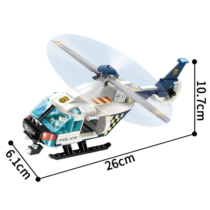 - Подробная модель вертолёта: Собери полицейский вертолёт с подвижными деталями и функциональными частями. Идеален для увлекательных сценариев погони в воздухе.