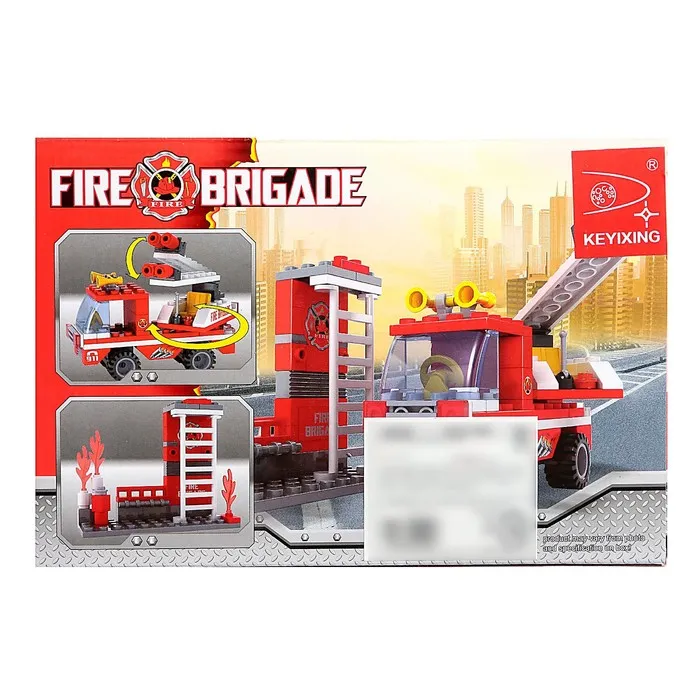 Набор содержит 133 детали и позволяет сконструировать пожарную часть, функциональный автомобиль спецслужбы и фигурки огнеборцев.