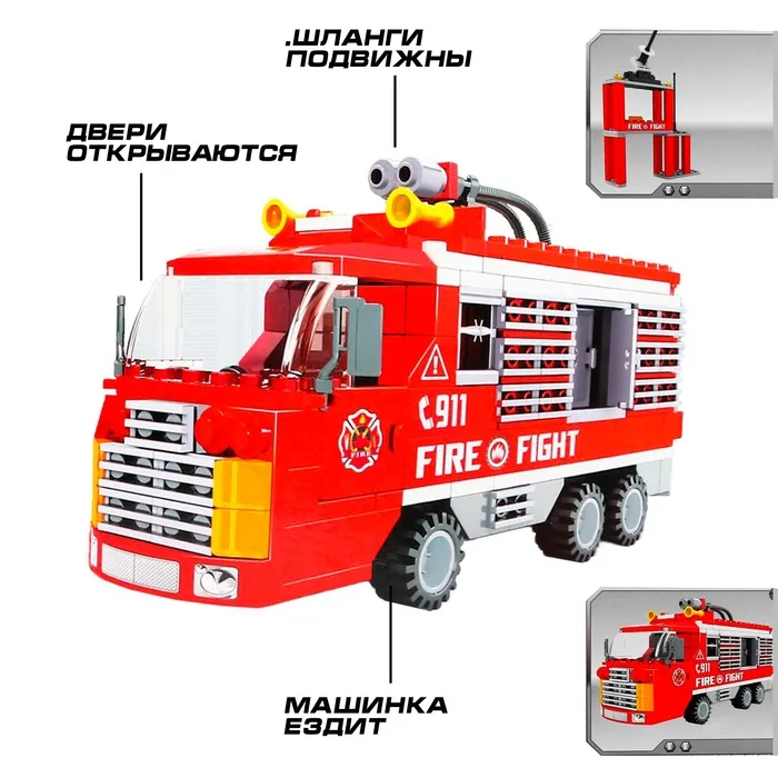 С набором торговой марки Ausini малыш соберёт спецтехнику и спасёт город от пожаров. Из 309 деталей ребёнок сконструирует автомобиль и поспешит на место происшествия. Чтобы сбить пламя, юный спасатель использует шланг, а с помощью огнетушителя устранит возгорание.