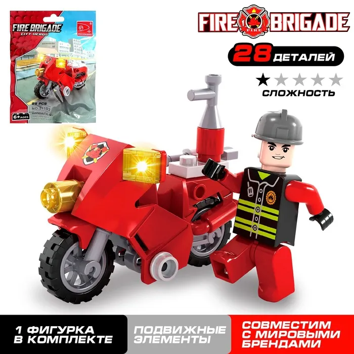 Конструктор «Пожарный байк», 28 деталей — Характеристики