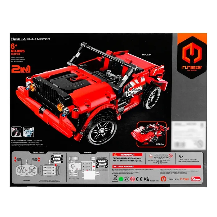 - Два варианта сборки: Набор включает 351 деталь, из которых можно собрать два разных варианта машины. Это даёт возможность менять модель и расширяет игровые возможности.