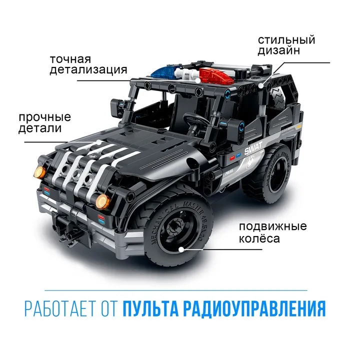 Конструктор радиоуправляемый «Полицейский джип», 2 варианта сборки, 355 деталей — Характеристики