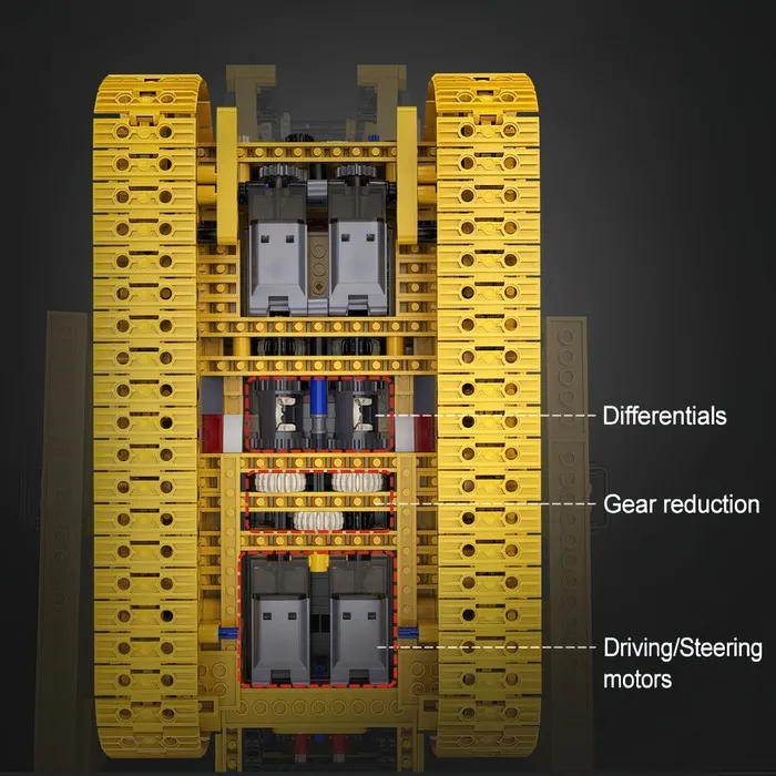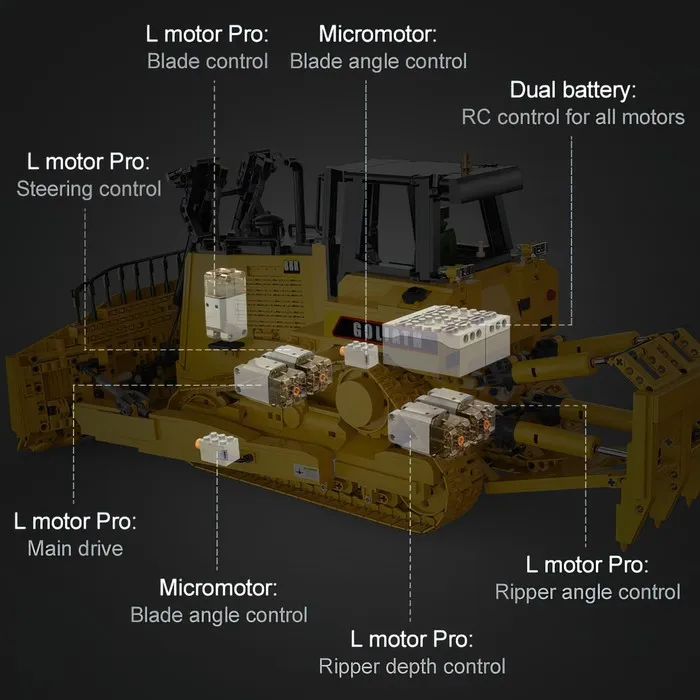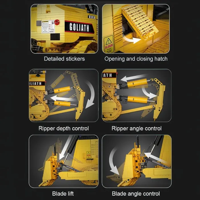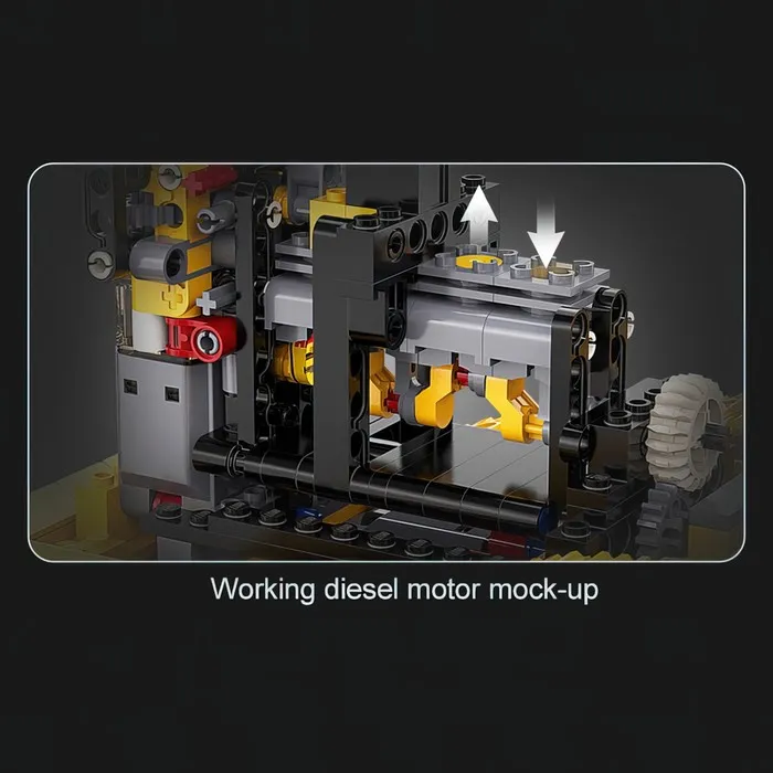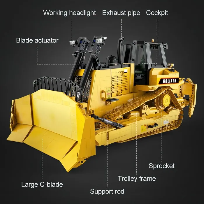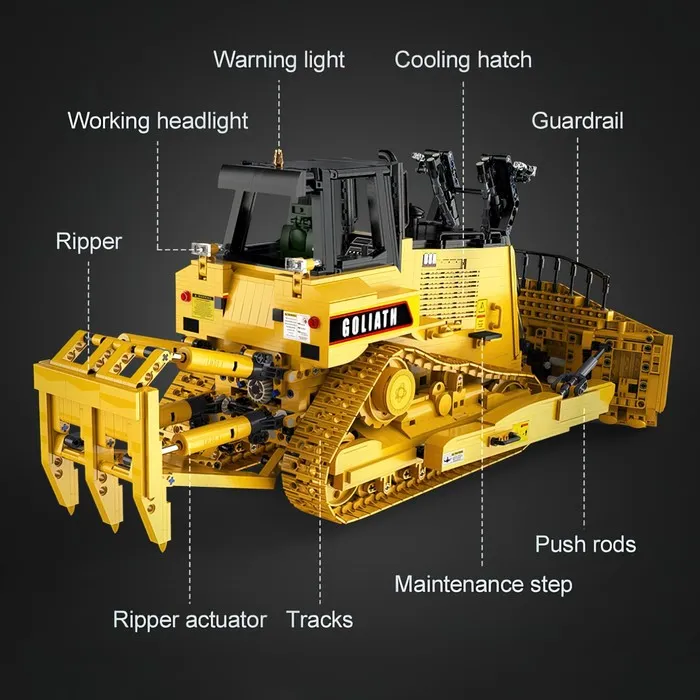 - Масштабная модель: Бульдозер воссоздан с высокой степенью детализации, повторяя реальные механизмы.