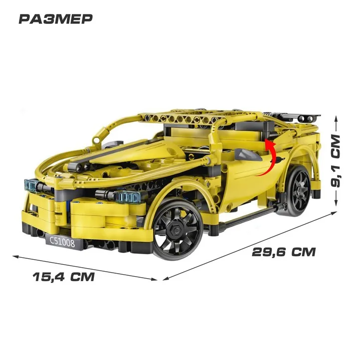 Радиоуправляемый конструктор торговой марки Double E — это детализированная модель спорткара, которую ребёнок соберёт самостоятельно. Она состоит из нестандартных для классического конструктора элементов: балок, шестерёнок и осей — что придаёт ей максимальную реалистичность.