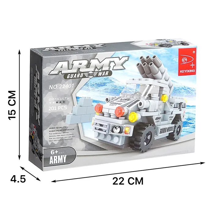 С набором торговой марки Ausini армия юного командира пополнится функциональной ракетной установкой. Мощная спецтехника позволит солдатам укрепить территории, а в случае нападения врага — нанести решающий удар.