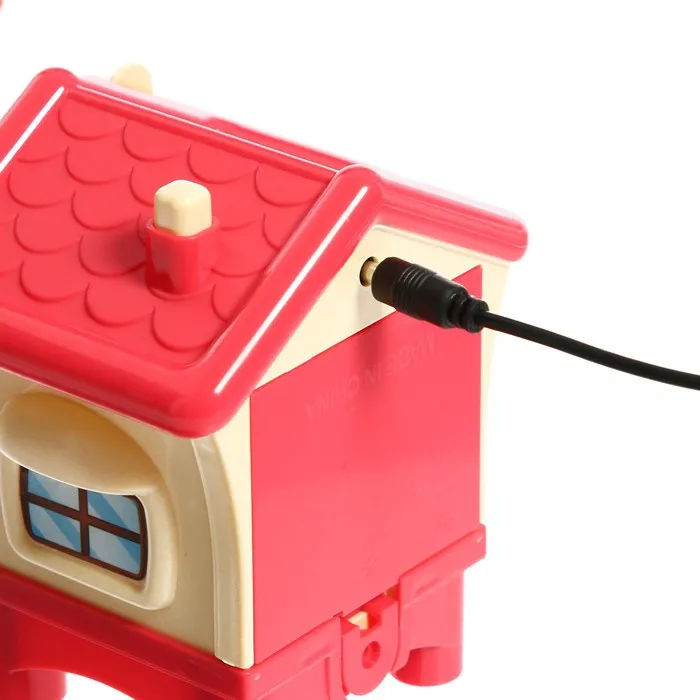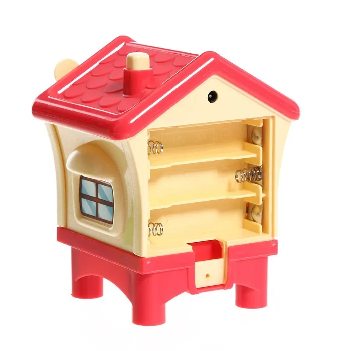 - У домика есть световые и звуковые эффекты. Для работы требуется 3 батарейки типоразмера AA (нет в комплекте) или источник питания 5 В (в комплект входит USB-кабель).