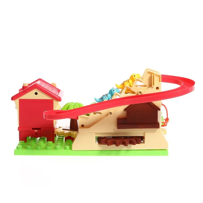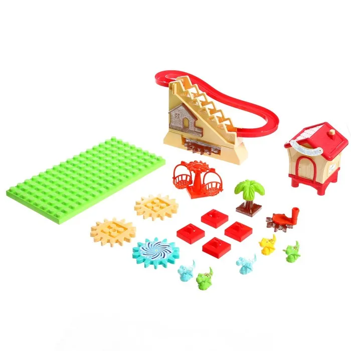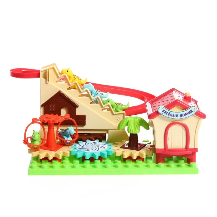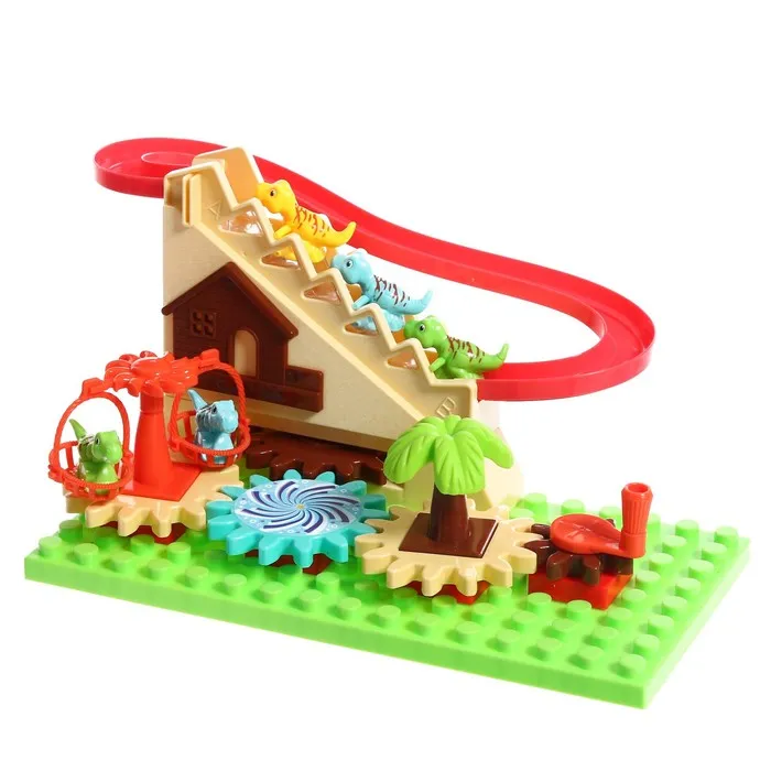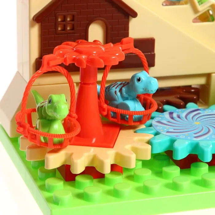 Развивающий конструктор с шестерёнками — увлекательный аттракцион для милых динозавров. Небольшой парк развлечений двигается за счёт вращения шестерёнок.