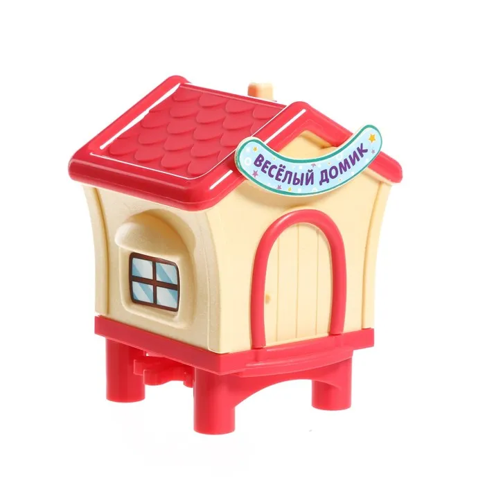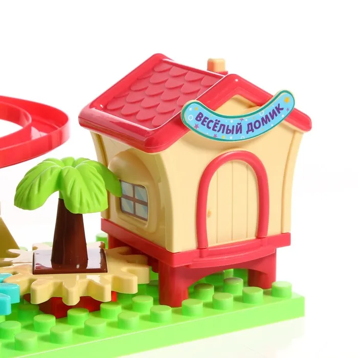 - Конструктор можно крутить вручную или использовать моторчик. Он находится в «Весёлом домике».