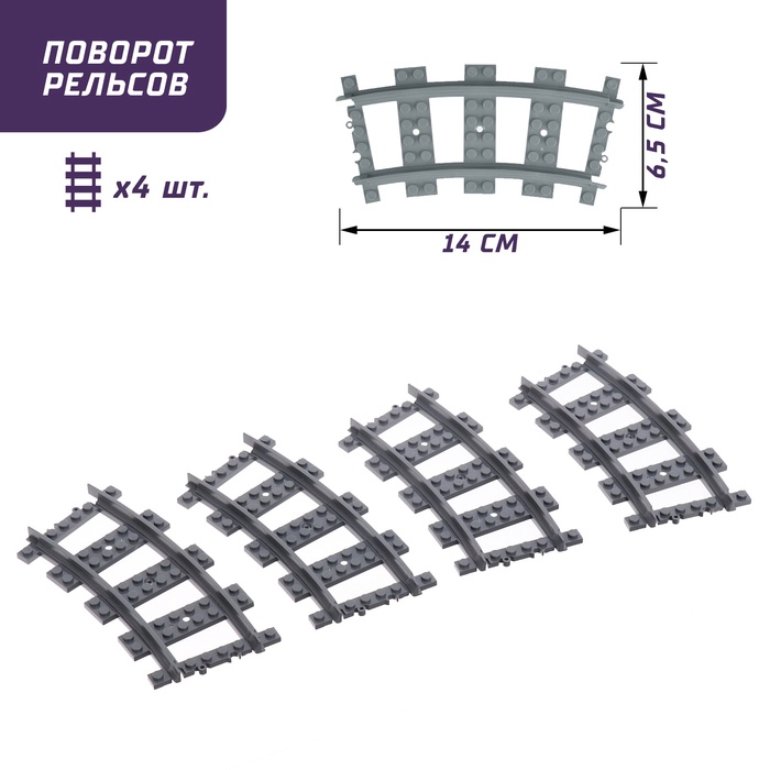 Набор подходит для любых игрушечных поездов с колеей стандартного размера. Можно комбинировать с другими рельсами, расширяя железнодорожную сеть. Подарите ребёнку возможность стать строителем и машинистом — пусть создает свои уникальные пути!
