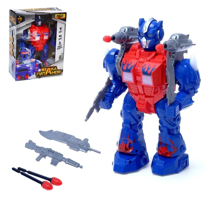 Робот выполнен из высококачественного пластика, на лице титана огненная маска, а руки и ноги покрыты защитными пластинами. В арсенале воина есть длинный меч.