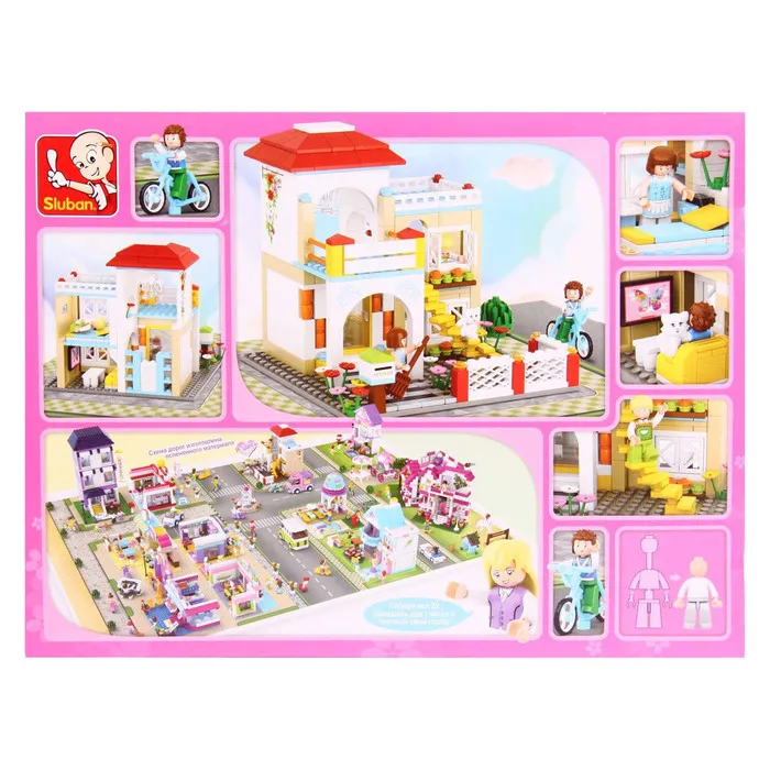 Игровой набор содержит 380 деталей и позволяет сконструировать чудесный дом с комнатами, дополнительными аксессуарами и фигурками жителей.