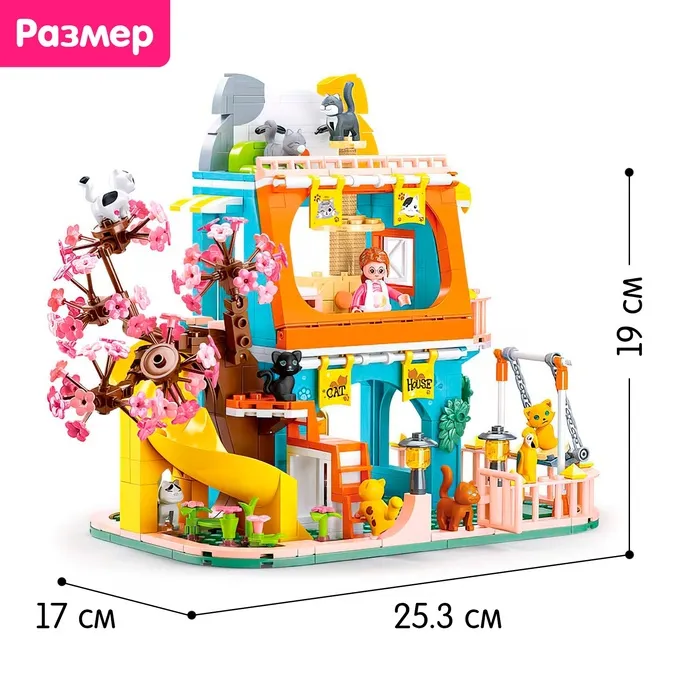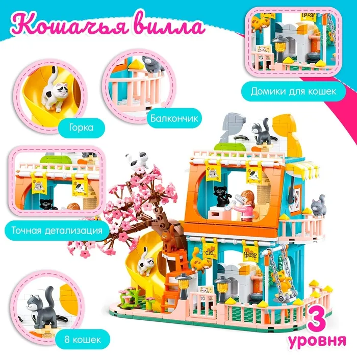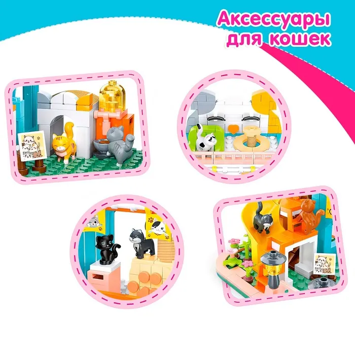 Конструктор «Кошачья вилла» — это увлекательный набор для детей от 6 лет, состоящий из 521 детали. С его помощью ребёнок сможет построить очаровательный домик для кошек, развивая творческие и инженерные навыки.