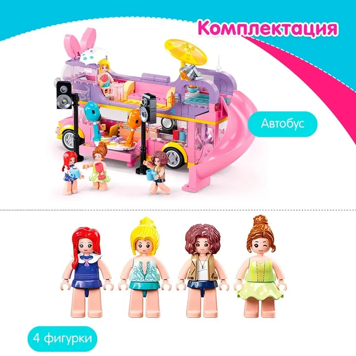Конструктор для девочек «Розовая мечта» подойдёт в качестве подарка или приятного сюрприза. Красочный автобус для вечеринок украсит интерьер и создаст уютную атмосферу в детском уголке. Соберите конструктор, катайтесь по кукольному городку, устройте музыкальный концерт, катайте куколок с горки и веселитесь от души!