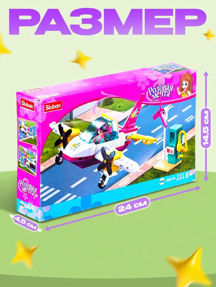 Конструктор Розовая Мечта «Пляжный самолет», 111 деталей — Характеристики