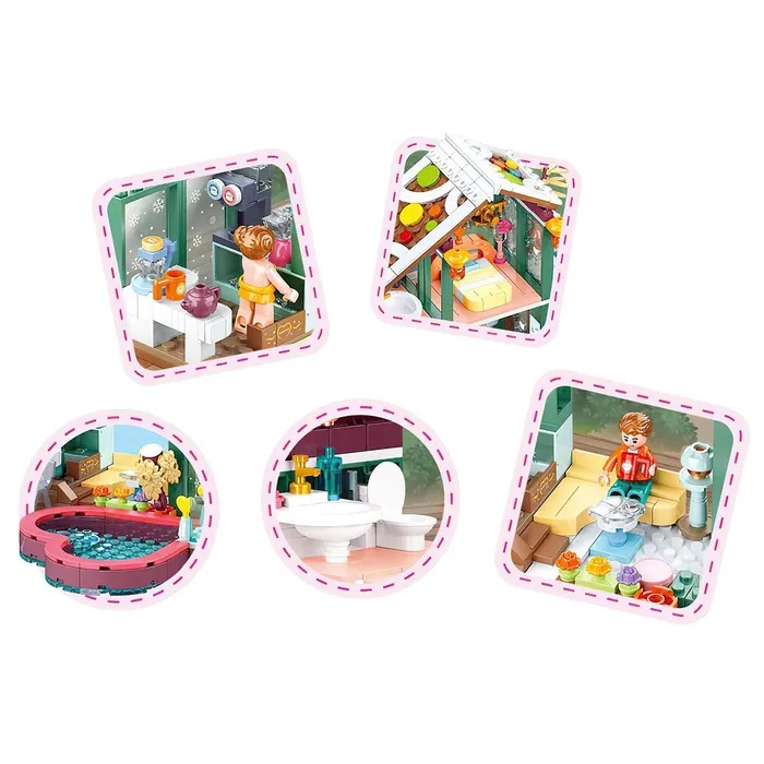 Создай свой идеальный загородный дом! Конструктор Розовая мечта «Загородный дом с бассейном» – это увлекательный набор для строительства и творчества, который подарит детям и взрослым возможность воплотить свои архитектурные фантазии. Соберите уютный дом с бассейном, окруженный зеленью, и наполните его жизнью с помощью детализированных элементов.