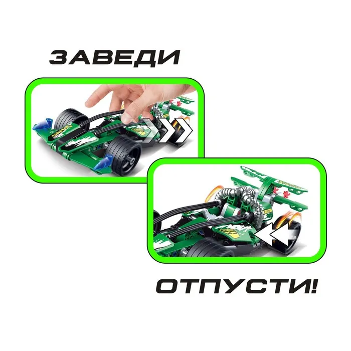Соберите свою гоночную машинку с инерционным механизмом! Этот конструктор создан для умелых ручек и любознательных умов. Секрет: соедините эту модель с другой и получите эксклюзивную третью версию машинки.