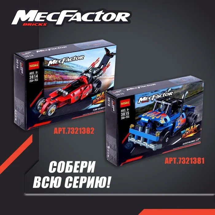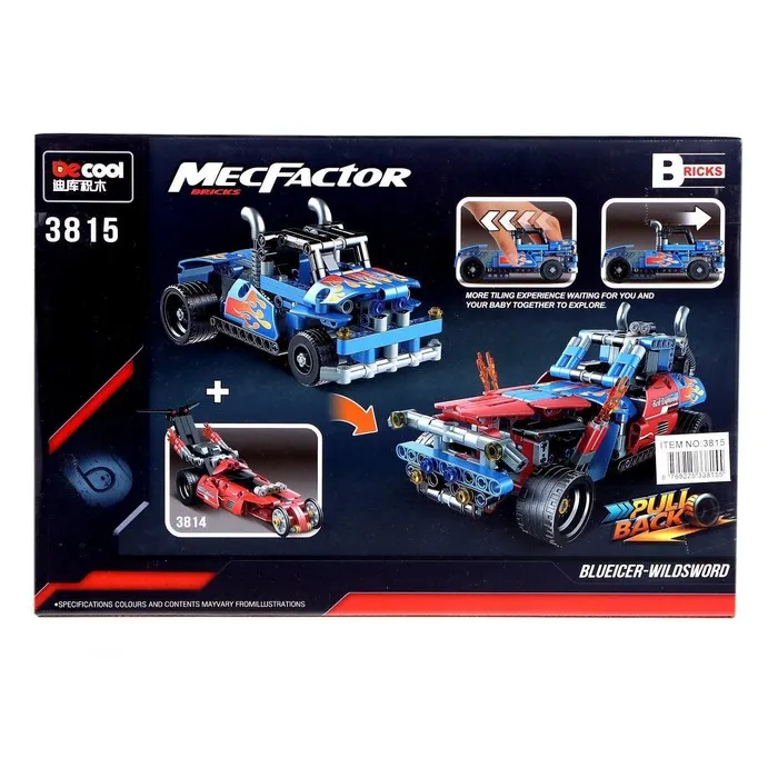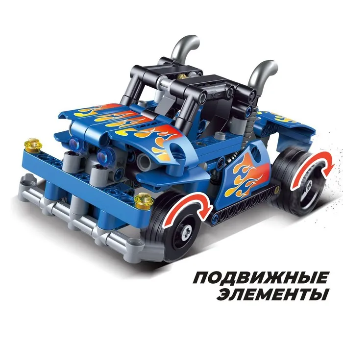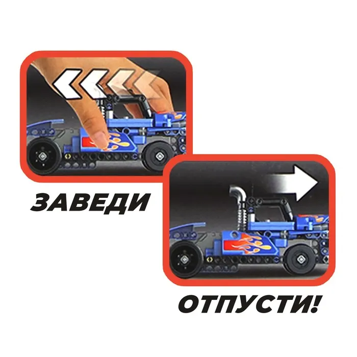 Соберите свою гоночную машинку с инерционным механизмом! Этот конструктор создан для умелых ручек и любознательных умов. Секрет: соедините эту модель с другой и получите эксклюзивную третью версию машинки.