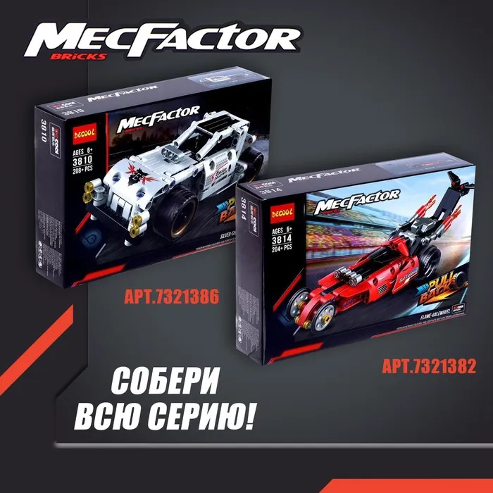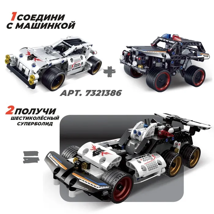 Соберите свою гоночную машинку с инерционным механизмом! Этот конструктор создан для умелых ручек и любознательных умов. Секрет: соедините эту модель с другой и получите эксклюзивную третью версию машинки.