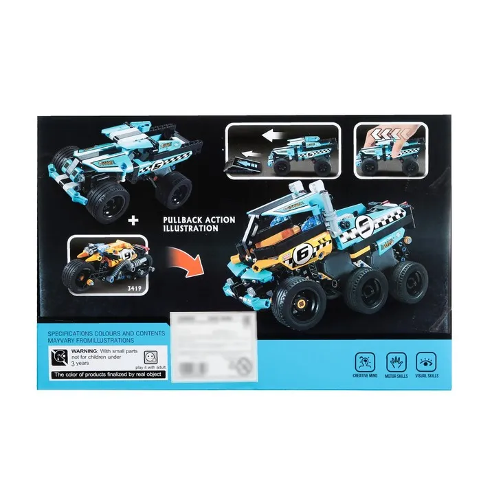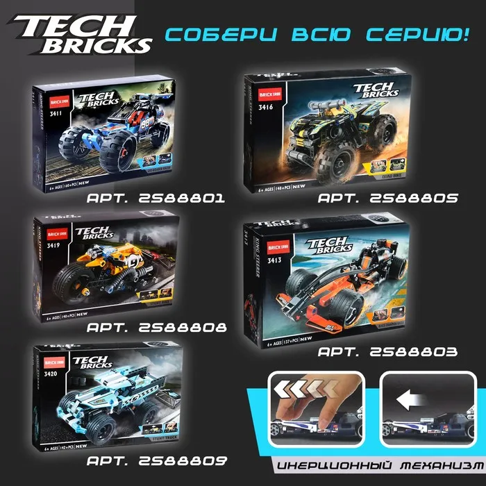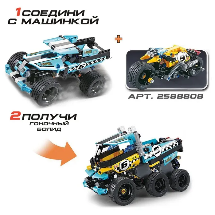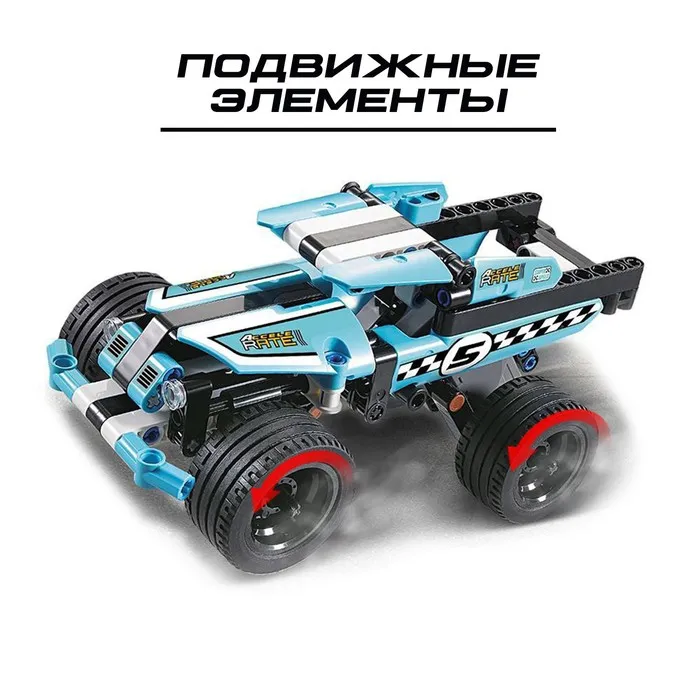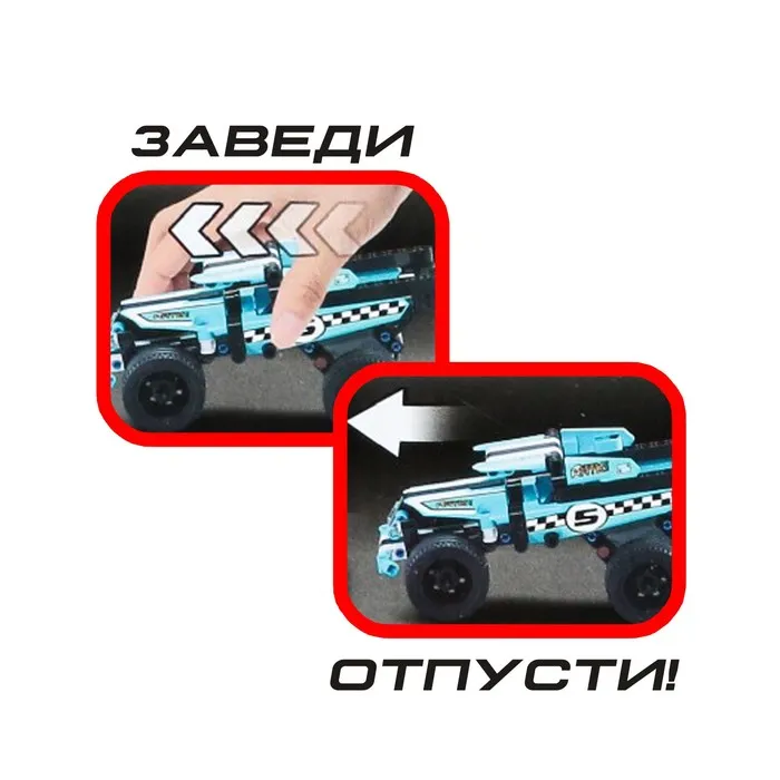 Соберите свою гоночную машинку с инерционным механизмом! Этот конструктор создан для умелых ручек и любознательных умов. Секрет: соедините эту модель с другой и получите эксклюзивную третью версию машинки.