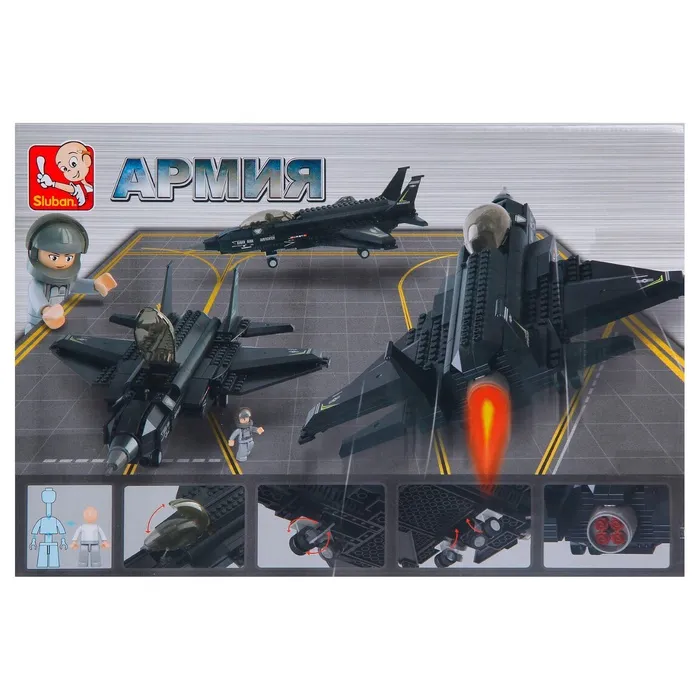 Набор содержит 252 детали и позволяет собрать ударный летательный аппарат и фигурку солдата. Подвижные элементы разнообразят игровые сюжеты: мальчишка почувствует себя профессиональным лётчиком, постигнет азы высшего пилотажа и выстроит стратегию боя.
