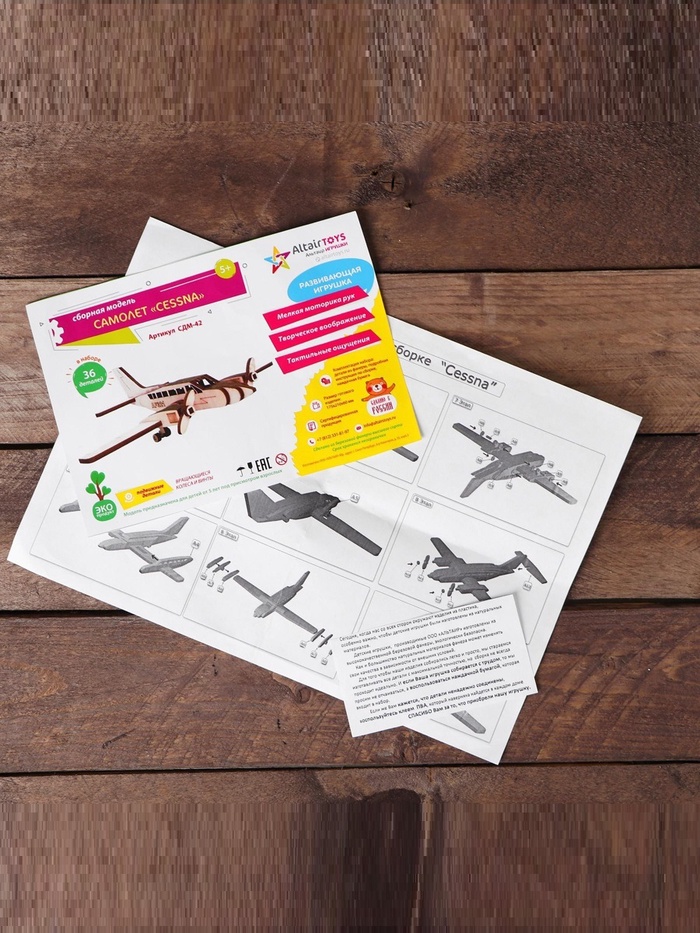 Сборная модель самолёта CESSNA — отличный вариант досуга, который разовьёт у ребёнка множество навыков. Склеивайте детали между собой согласно инструкции. При желании раскрасьте игрушку и покройте лаком. После сборки моделью можно играть.