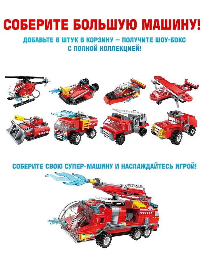 - Часть коллекции спецтехники: можно объединить с другими наборами серии, создавая полноценную пожарную команду.